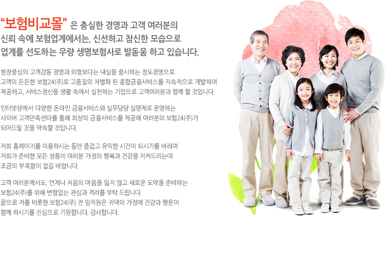 인카금융서비스(주) 보험24 WEB사이트는 고객님들에게 보다 더 좋은 보험서비스를 제공하고자 필요한 최소한의 개인정보를 수집.활용하고 있습니다.